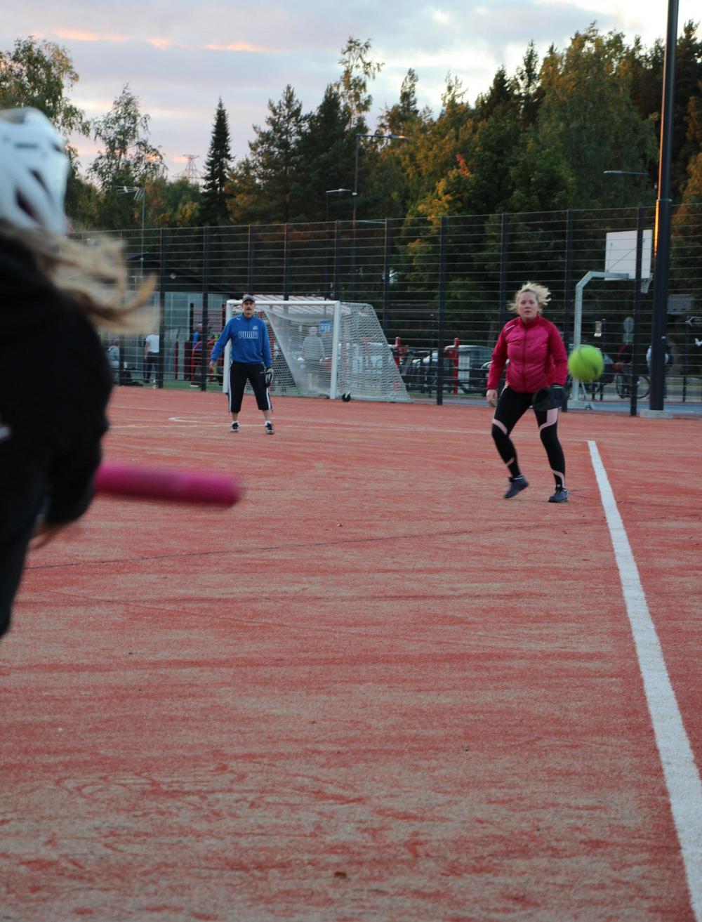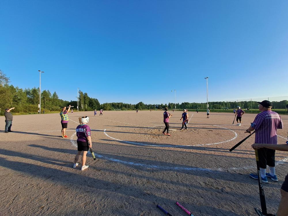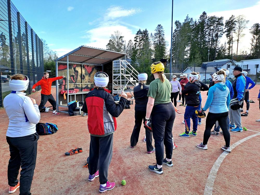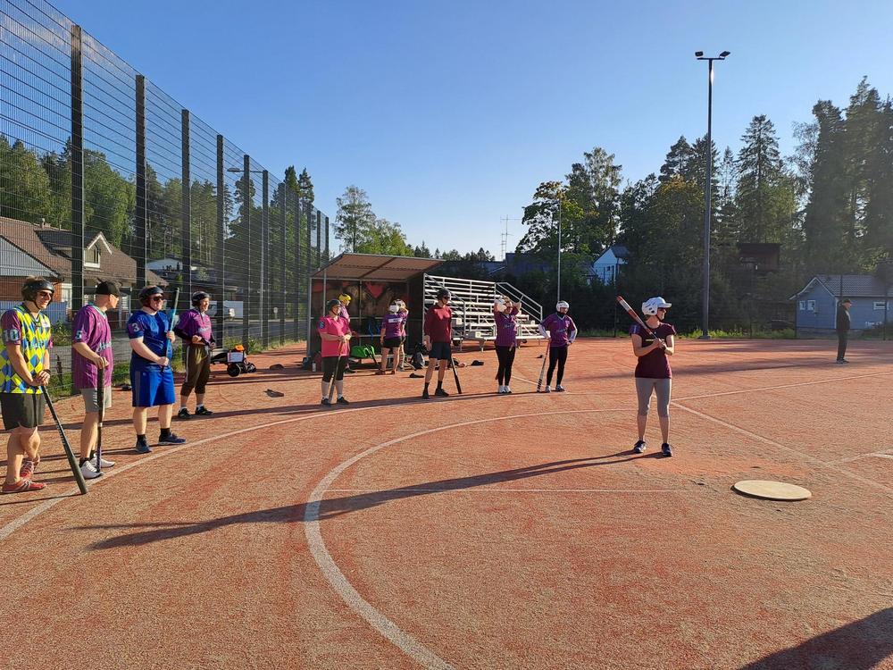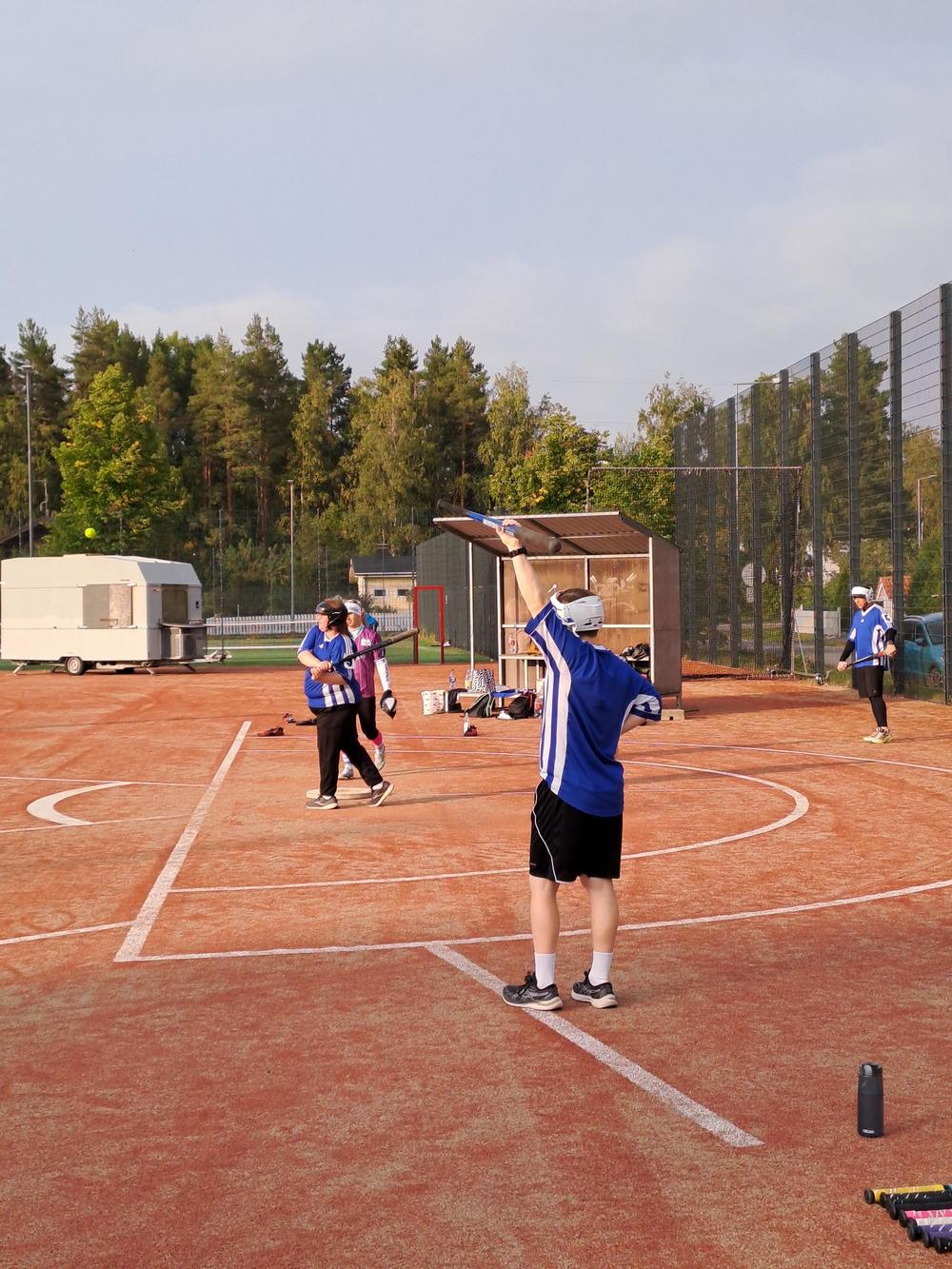 Kaikkia pesäpallossa tarvittavia tietoja ja taitoja päästään hiomaan treeneissä. Lähes joka kerta on sen verran porukkaa, että pelataan ja kerrataan pelisääntöjä.