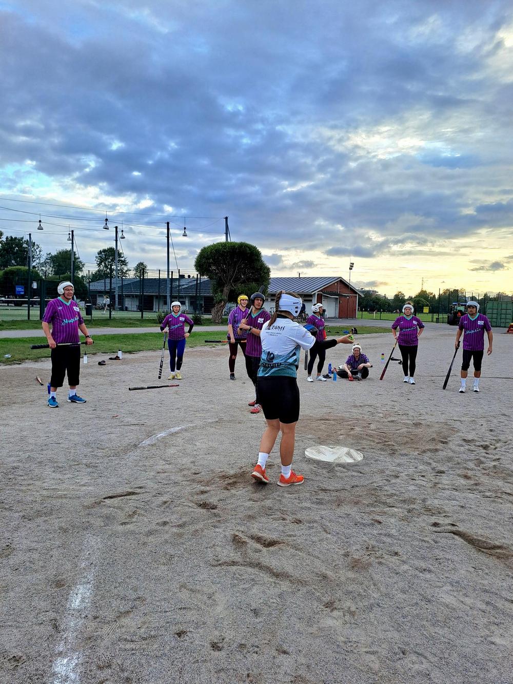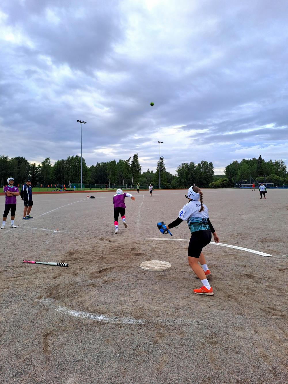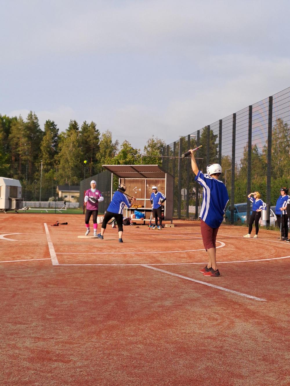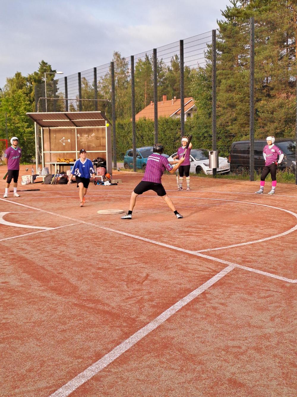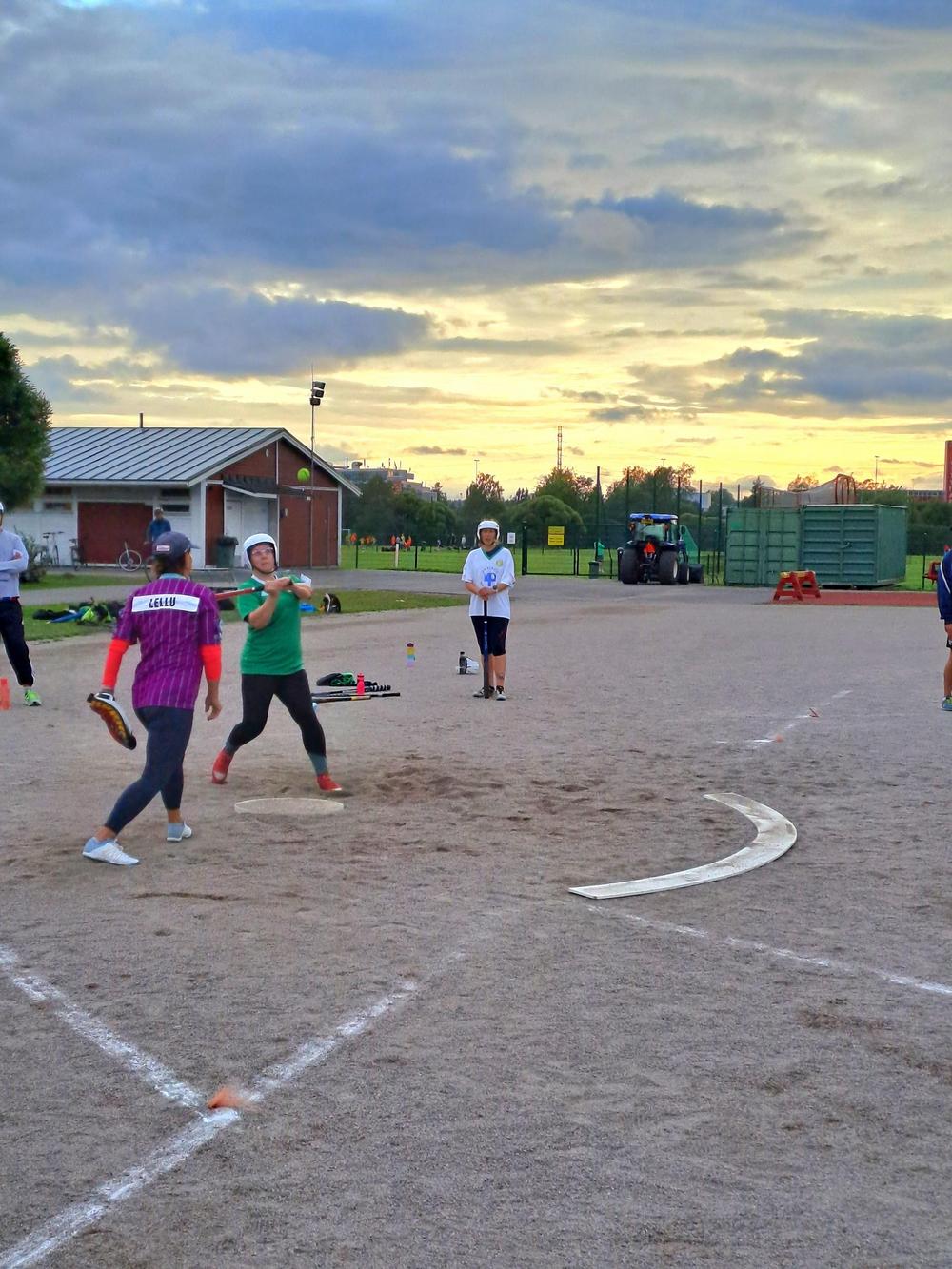 Kaikkia pesäpallossa tarvittavia tietoja ja taitoja päästään hiomaan treeneissä. Lähes joka kerta on sen verran porukkaa, että pelataan ja kerrataan pelisääntöjä.