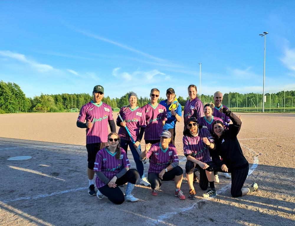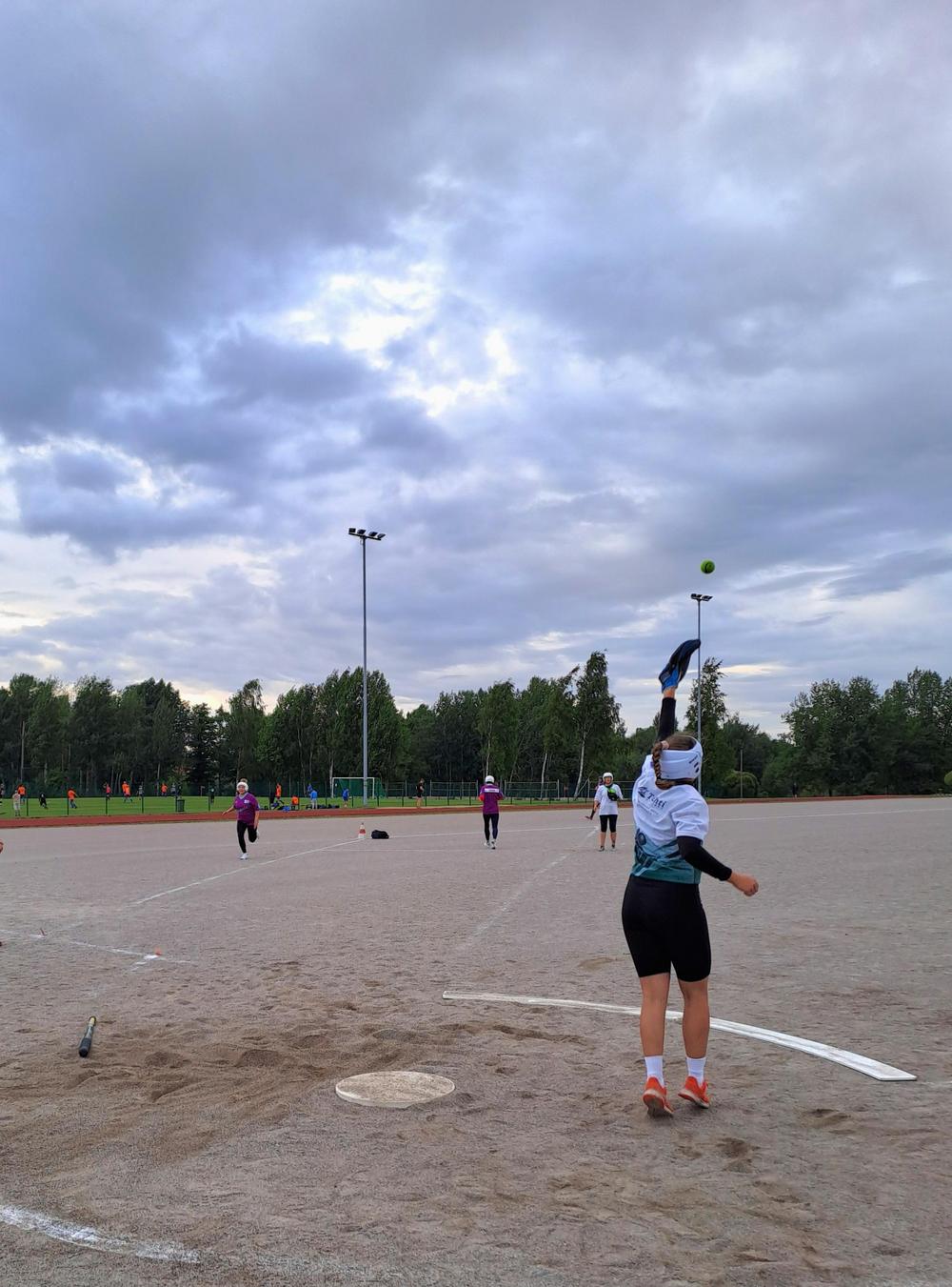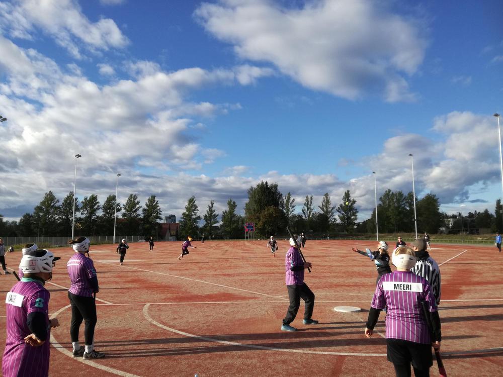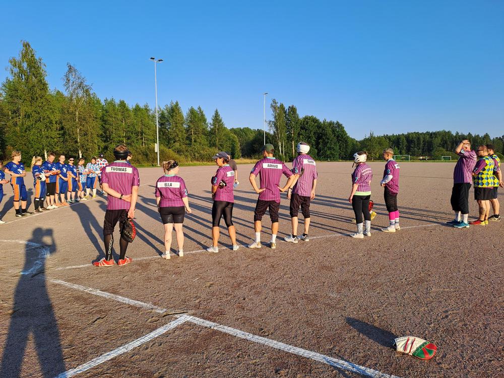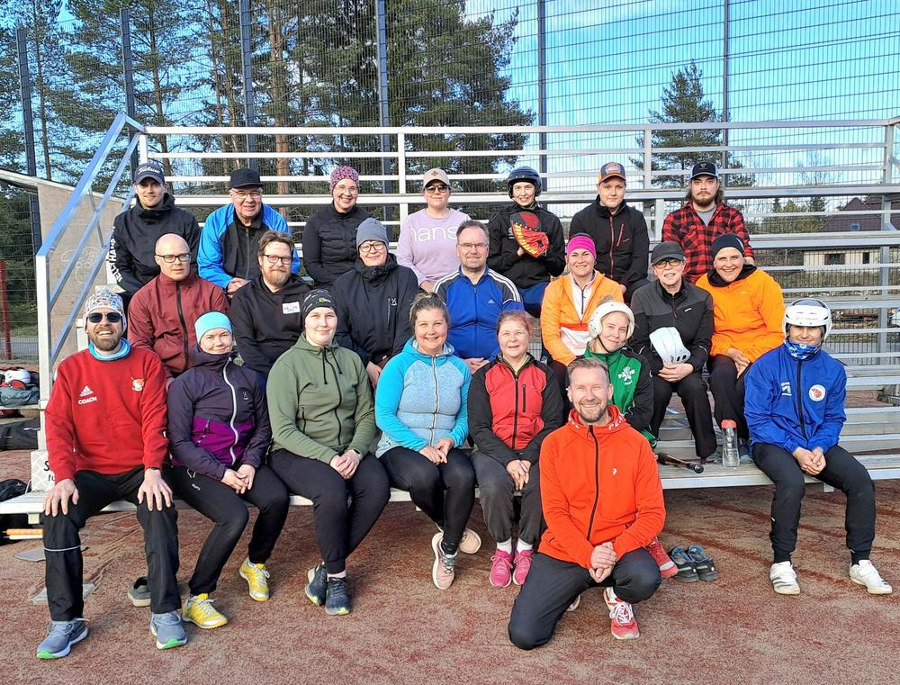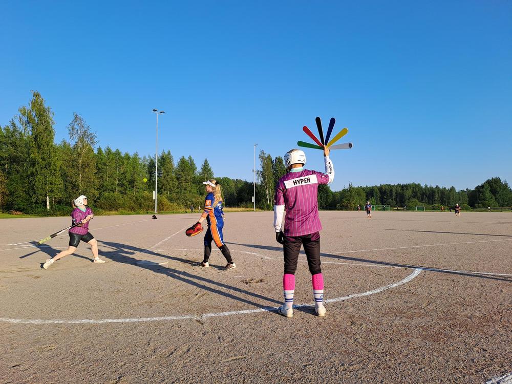 Kaikkia pesäpallossa tarvittavia tietoja ja taitoja päästään hiomaan treeneissä. Lähes joka kerta on sen verran porukkaa, että pelataan ja kerrataan pelisääntöjä.